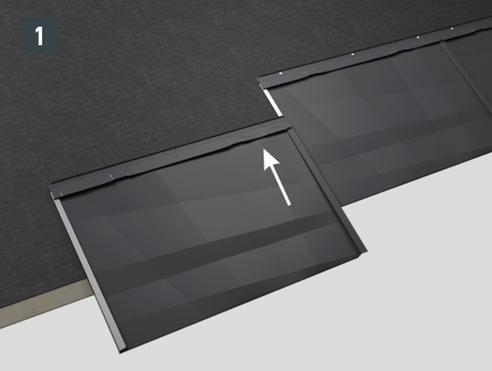 • Polaganje strešnih panelov FX.12 se izvaja od desne proti levi in ga je treba izvajati v vrstah (v vodoravnih vrstah).