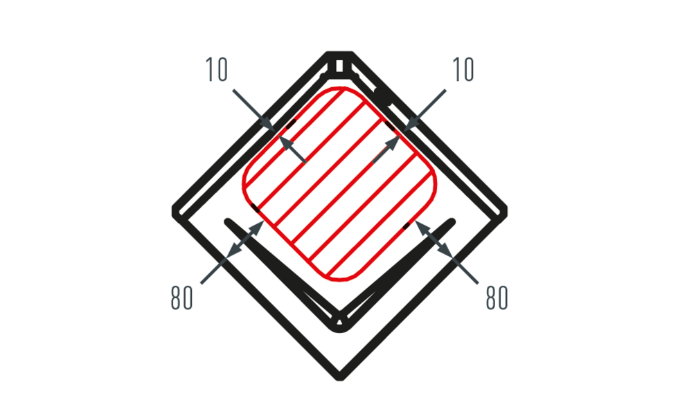 Pri montaži dodatnih strešnih izdelkov pazite na dovoljeno montažno območje na strešnih rombih 29 x 29. Naslednja slika prikazuje montažno območje za dodatne izdelke na nožnih delih. Za druge dodatne izdelke so lahko določena drugačna montažna območja.