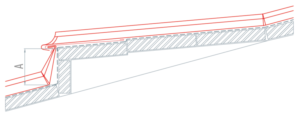 Če dolžina trakov presega 10 metrov, priporočamo, da zmanjšate širino trakov (osna mera: najv. 430 mm; prirez: najv. 500 mm). Če je dolžina trakov med 12 in 15 m, uporabite širino trakov z osno mero najv. 430 mm (širina prireza: najv. 500 mm) ali ožjo! Širina prireza pri aluminijastih trakovih PREFALZ ne sme presegati 650 mm za streho in 500 mm na fasadi. Fasadne obloge so izvedene kot zrcalna ali ploščna kritina do 4-metrskih dolžin trakov in primarno izvedene z enostavnim pravokotnim zgibom.