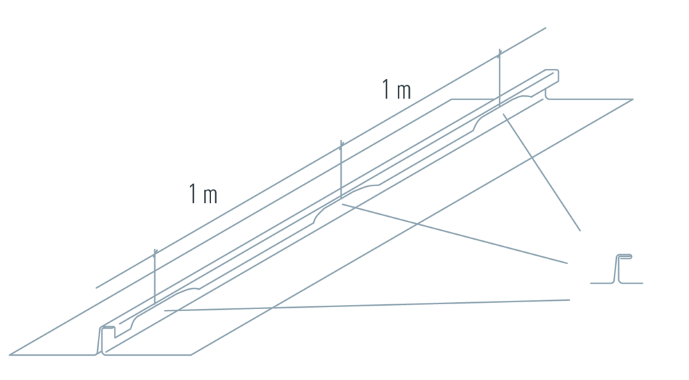 Na stroju za zgibanje prilagodite tlak. Mazanje ni potrebno. Dilatacijski prostor med kovinskimi trakovi določi stroj za zgibanje (sistem zgibanja) in znaša pribl. 3–5 mm.