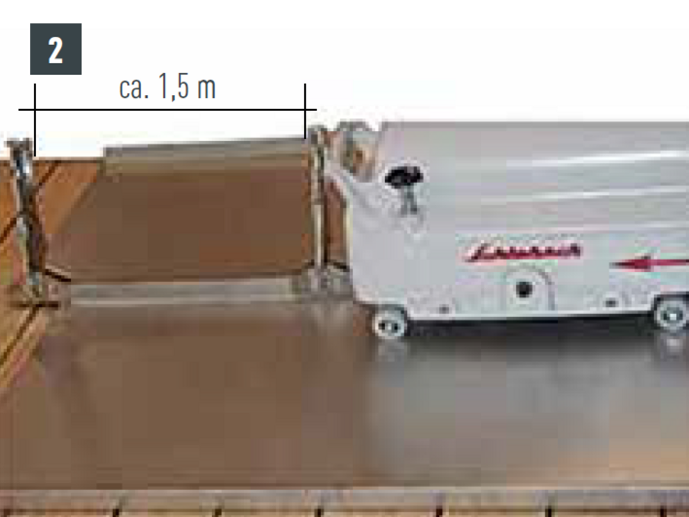Položen trak se po celotni dolžini traku spne z vpenjalnimi kleščami (glejte sliko 1) na razdalji pribl. 1,5–2,0 m (glejte sliko 2). Tako bo vzgib zaprt pod kotom 90°.