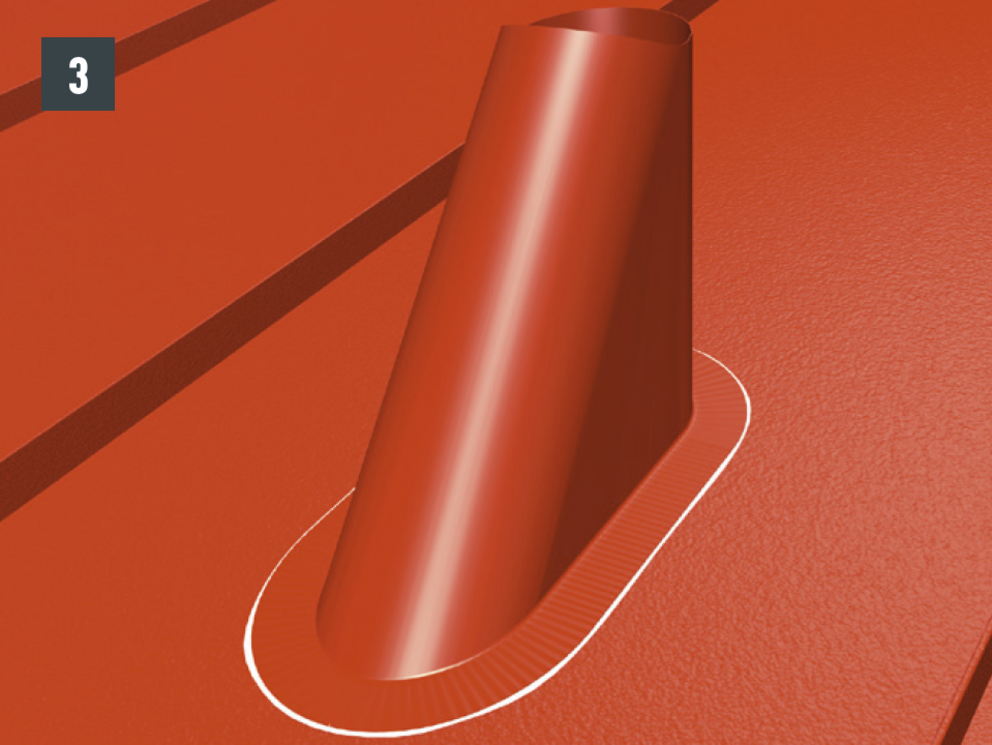 Obrobo za lepljenje PREFA položite nad cevni prehod in na traku PREFALZ označite ovalno, notranjo in zunanjo prirobnico za lepljenje.