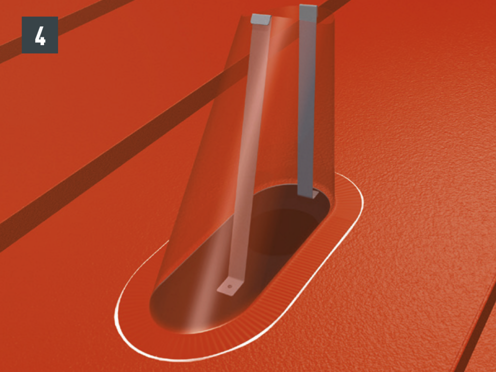 Obrobo za lepljenje ne namestite in montirajte na zgib strešne kritine PREFALZ. Cevne prehode zaščitite pred močnimi mehanskimi obremenitvami (npr. pritisk zaradi snega).