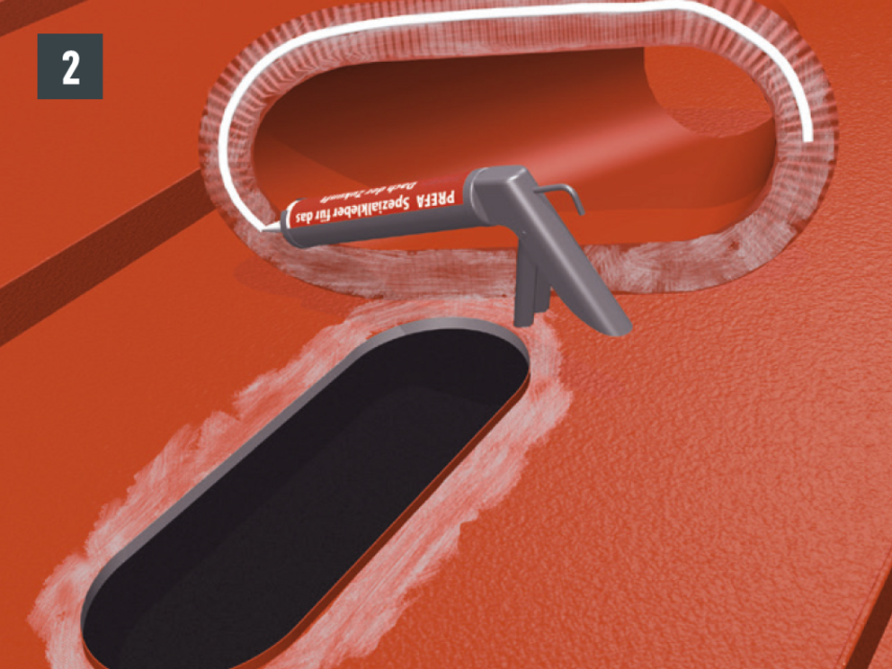 Posebno lepilo nanesite enakomerno na sredino prirobnice.