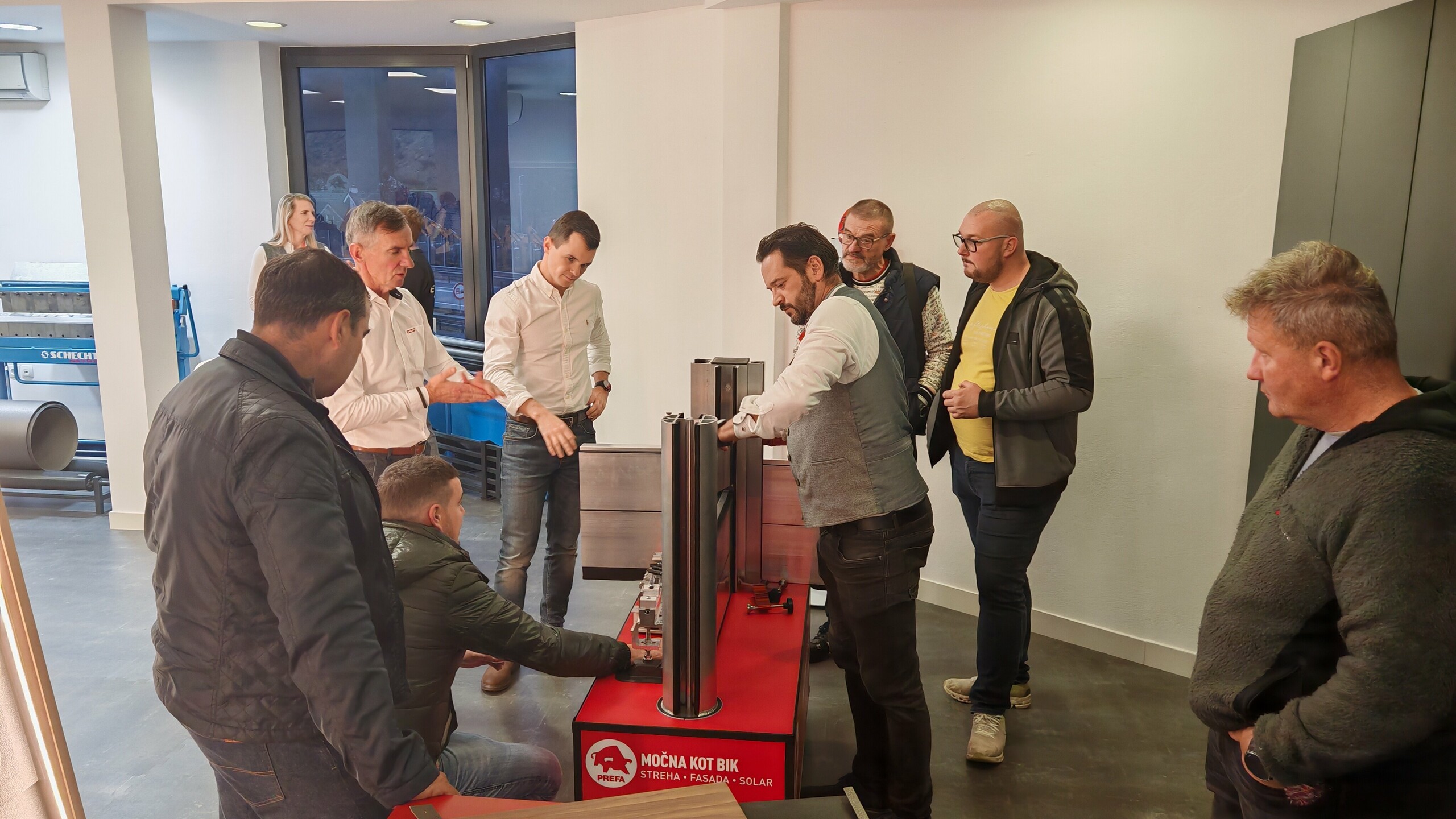 Dogodek je združil predstavnike krovskih podjetij, arhitekte in projektante ter partnerje iz Slovenije in tujine. Udeleženci so si ogledali nov, sodobno opremljen izobraževalni prostor, kjer bodo že od januarja 2026 naprej potekala teoretična in praktična PREFA usposabljanja, hkrati pa tudi novi razstavni prostor z najnovejšimi aluminijastimi strešnimi, fasadnimi in solarnimi sistemi.