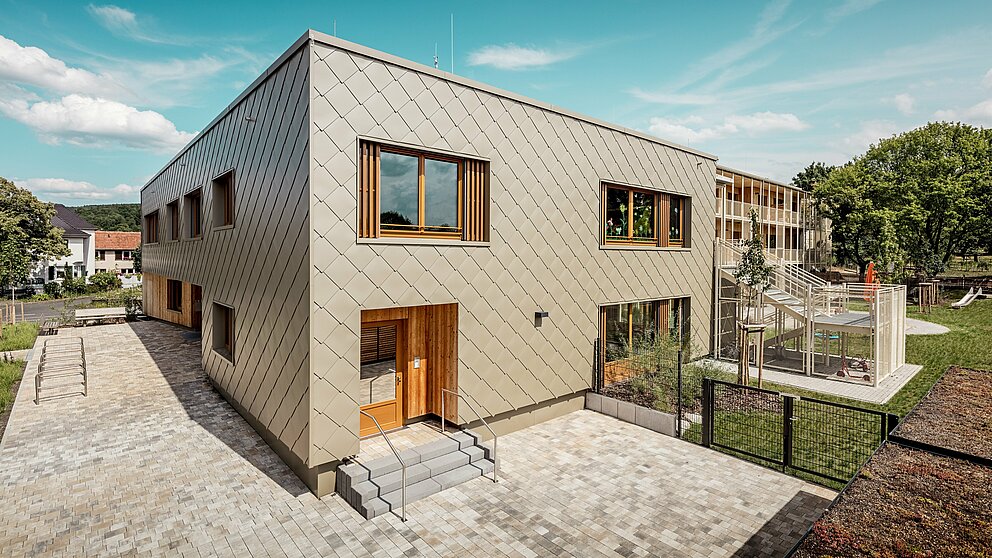 Mesto Alzenau v Spodnji Frankoniji je znano po svojih vinogradih in gradu Alzenau, enem najpomembnejših poznogotskih objektov v Frankoniji. Mesto na robu Spessarta, ki je ponosno na svojo zgodovinsko dediščino, si prizadeva za harmonično združevanje preteklosti in prihodnosti z odgovornim in trajnostnim razvojem mesta. Vsak projekt novogradnje se skrbno preuči z vidika njegove ekološke in urbanistične dodane vrednosti. Tako je bilo tudi pri novogradnji občinskega vrtca, ki ga je uspešno izvedel arhitekturni biro Härtner Architekten iz Stuttgarta.