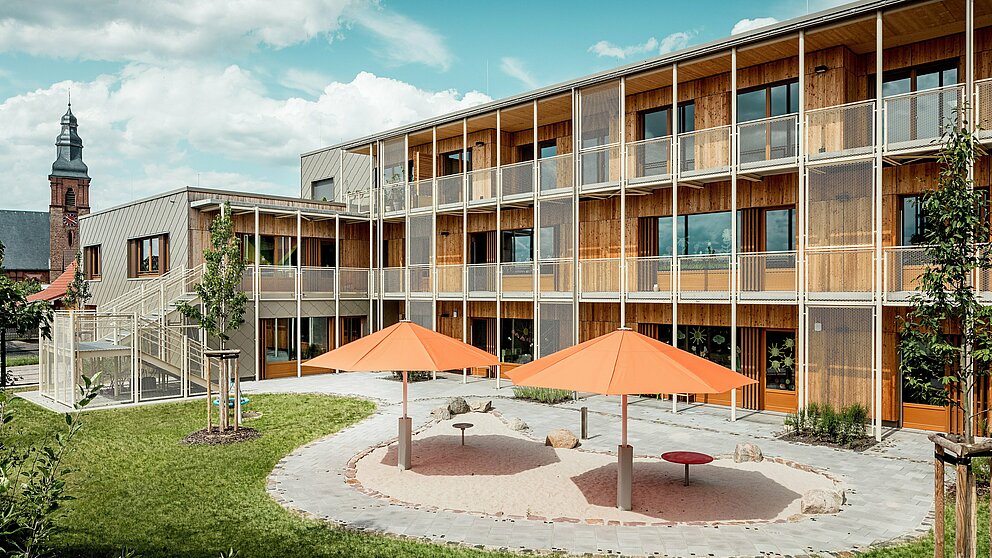 Novi vrtec naj ne bi bil namenjen le najmlajšim za dnevno oskrbo, temveč tudi kot bivalni prostor za zaposlene v bližnji kliniki. »Menimo, da je dobro, če se združi več funkcij, vendar se pogosto izkaže, da so logike financiranja, postopki javnih razpisov in pričakovanja lokalnih odločevalcev veliki izzivi,« pravita Theo in Claudia Härtner. Izziv, kot nalašč za arhitekturni par, saj sta specializirana ne le za gradnjo novih vrtcev, osnovnih šol in izobraževalnih ustanov, ampak tudi za rešitveno usmerjen dialog in razpravo z odgovornimi.
