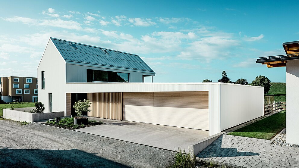 Material: PREFALZ streha in PREFALZ fasada, P.10 bela