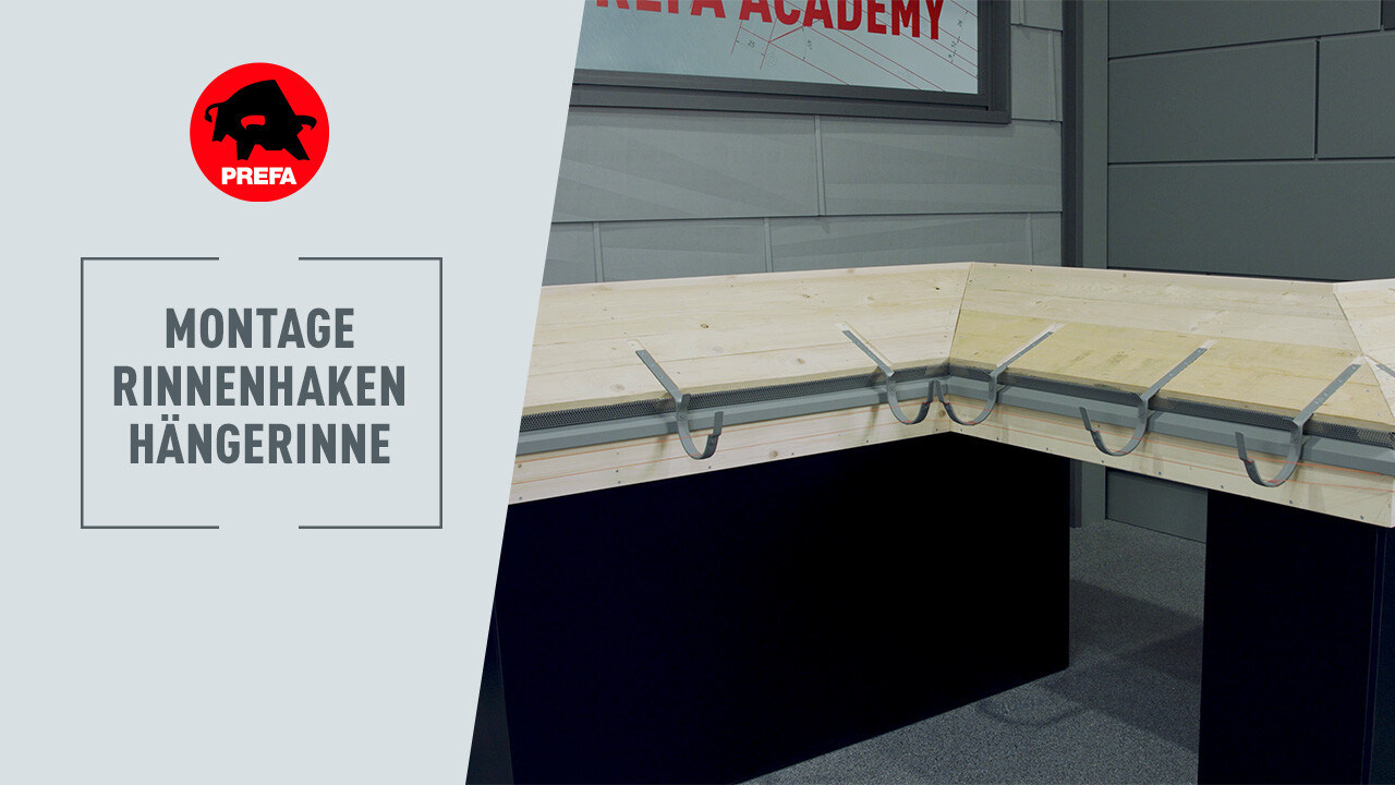 In diesem Video wird die Montage der PREFA Rinnenhaken einer Hängerinne gezeigt.