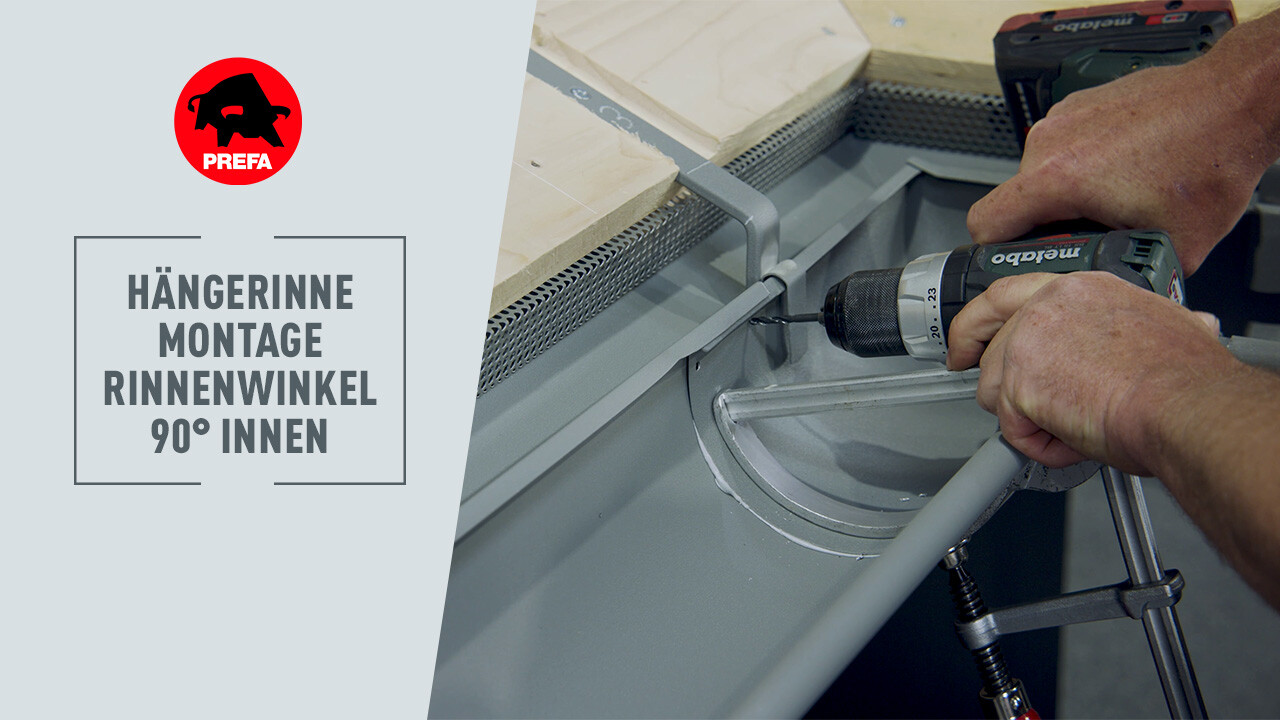 In diesem Video wird die Montage des 90°-Innenrinnenwinkels der PREFA Hängerinne gezeigt.