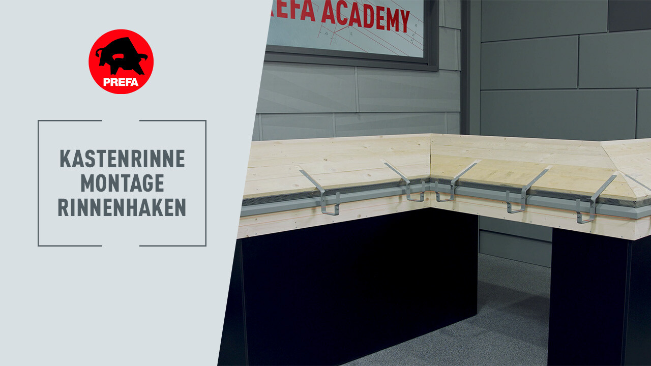 In diesem Video wird die Montage der Rinnenhaken von einer PREFA Kastenrinne gezeigt.
