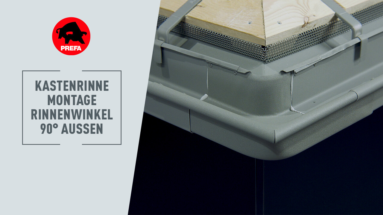 In diesem Video wird die Montage eines 90°-Außenrinnenwinkels der PREFA Kastenrinne gezeigt.