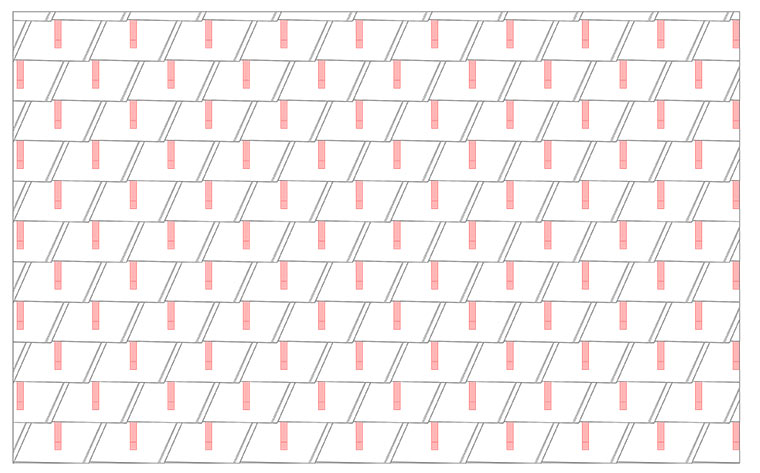 P ... Strešna plošča PREFA, R.16 ... Strešna plošča PREFA R.16, S ... Strešna skodla PREFA, R29 ... Strešni romb PREFA 29 × 29, R44 ... Strešni romb PREFA 44 × 44, FX.12 ... Strešni panel PREFA FX.12
